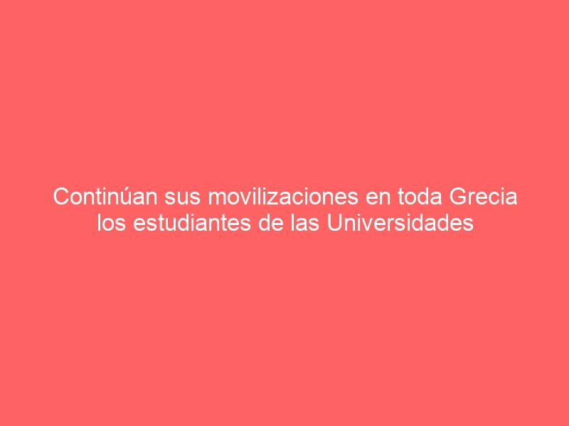 Continúan sus movilizaciones en toda Grecia los estudiantes de las Universidades, manifestandose por el cierre de escuelas previstas por el gobierno de grecia. Por iniciativa del Frente Militante Estudiantil (MAS), organización estudiantil que forma parte de la alianza de PAME, organiza grandes concentraciones diariamente en las grandes ciudades de Grecia como en Atenas, Salónica, Patra, Larisa etc. Hoy día organizan un bloqueo en el Ministerio de Educación.
