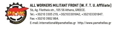 Workers, trade unions must strengthen solidarity and fight for the unblocking of refugees and migrants. To close the “Morias” camps and transfer the refugees and immigrants to decent facilities in mainland Greece, where their requests will be processed and transferred to the countries of destination. Strengthen the fight against the country’s involvement in US-NATO-EU war plans, against ratifying the agreement with the USA that turns Greece into a war bridge and target. The way out is in the struggle of peoples for a world without exploitation and imperialist wars, without refugee and migration.