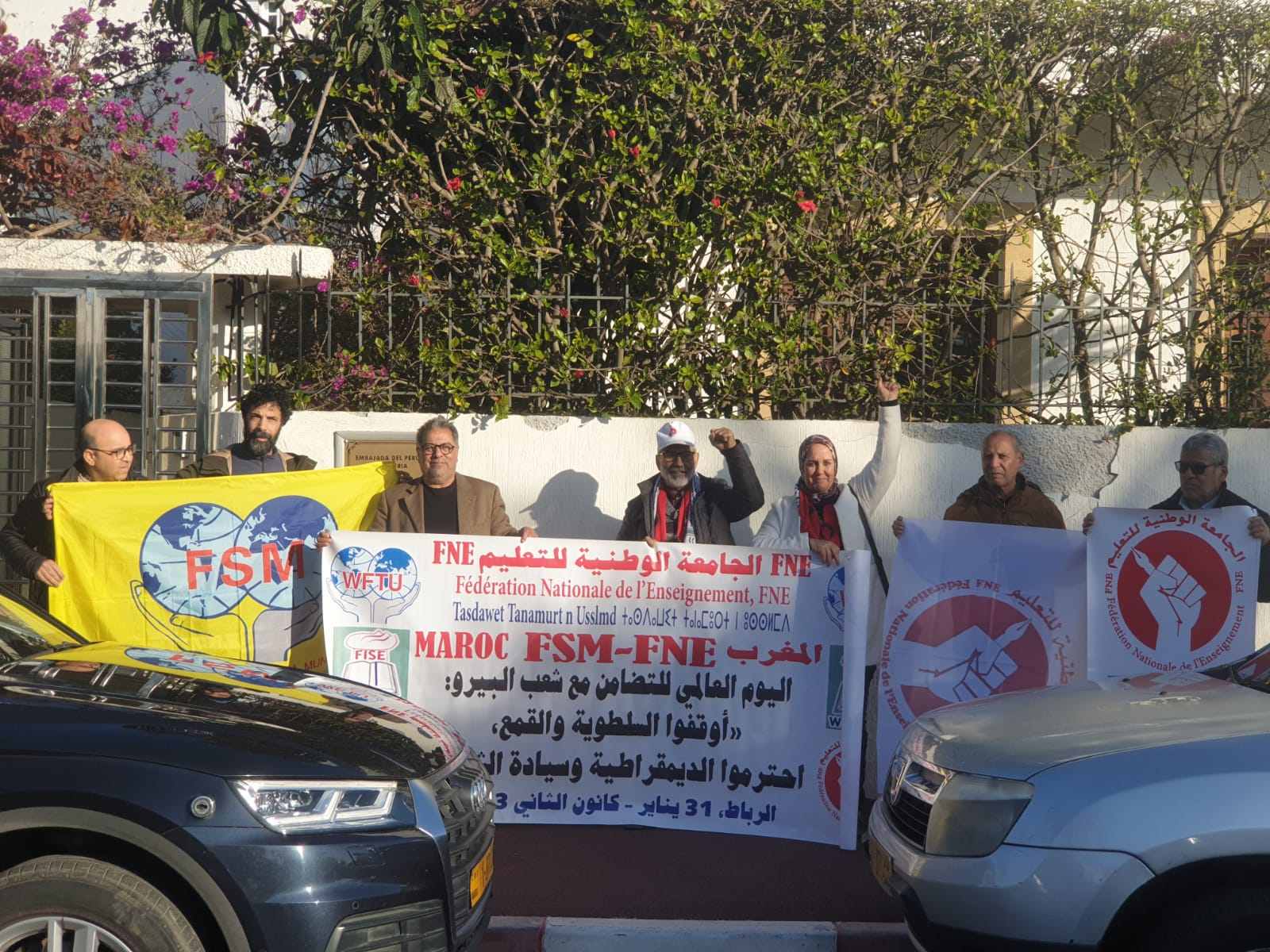 يدافع الاتحاد العالمي لنقابات المعلمين FISE عن نضال المعلمين في المغرب ويدعمهم، اللذين في ظل التهديدات والإرهاب الحكومي لديهم القوة والتصميم للدفاع عن حقوق النساء والرجال الذين يتعرضون للاضطهاد حاليًا لرفضهم الاتفاقية التي تحاول الحكومة فرضها والتي لا تلبي احتياجات المعلمين ولكن أيضًا التعليم للشعب بأكمله.