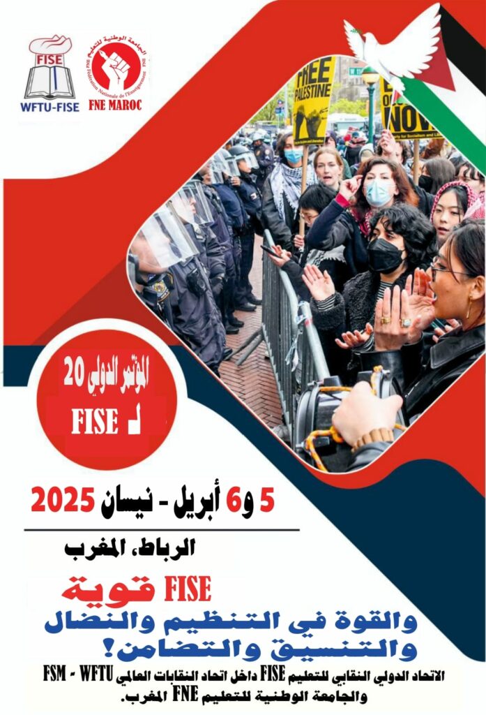 الثلاثاء، 10 مارس/آذار 2026 تُعرب الأمانة العامة للاتحاد الدولي النقابي للتعليم (FISE)، المنتسِب بكل فخر إلى اتحـــــاد النقابـــــات…