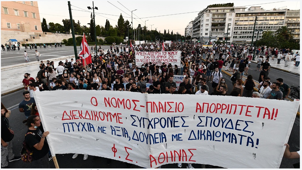 With big demonstrations on Thursday, July 14 in Athens, Thessaloniki and Patras the people rejected the new anti-peoples’ reforms promoted by the Greek Government for Universities.