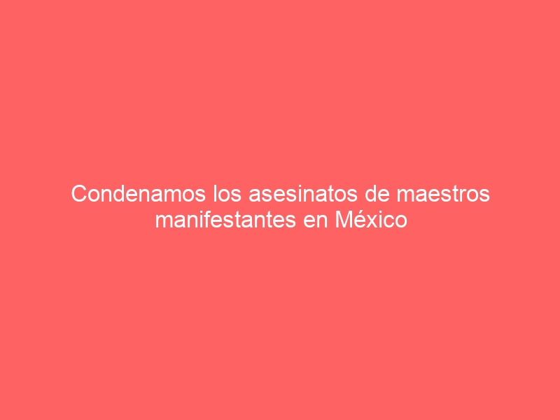 FISE llama a las organizaciones de enseñantes para expresar su solidaridad y para condenar la política contra la educación, antiobrera, terrorista y asesina del gobierno mexicano. Las luchas de los maestros en México en contra de la evaluación, en contra de la educación que se subordina a los intereses de las multinacionales y de los capitalistas, hay que continuar. Es necesario fortalecer la solidaridad y el apoyo de todos los trabajadores. Es necesario expresar el clamór de los sindicatos contra las detenciones, asesinatos, persecuciones de sindicalistas y trabajadores.