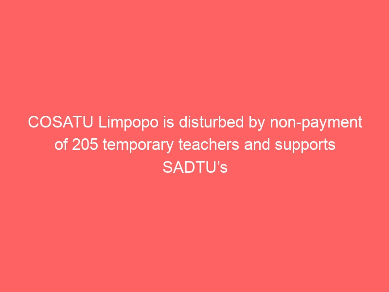The Congress of South African Trade Unions in Limpopo is highly disturbed by the non-payment of 205 temporary teachers since April 2016 as reported by SADTU. We are told that the Limpopo Department of Education blames this anomaly to the implementation of Instruction Note 7 from Treasury that deals with control of escalating compensation of employees and control measures in effecting appointments.