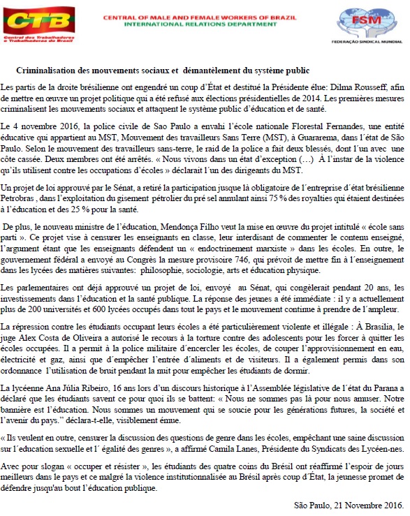 Criminalisation des mouvements sociaux et démantèlement du système public