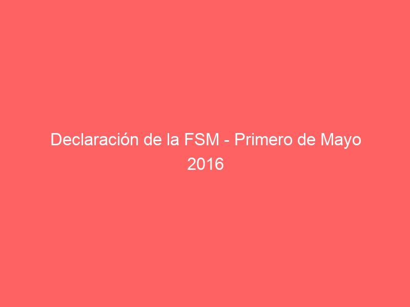 La Federación Sindical Mundial -FSM- con la ocasión del Día Internacional de los Trabajadores – 1ero de Mayo 2016 expresa sus saludos militantes a todos los hombres y mujeres de la clase obrera y sus 92 millones de miembros en más que 120 países.