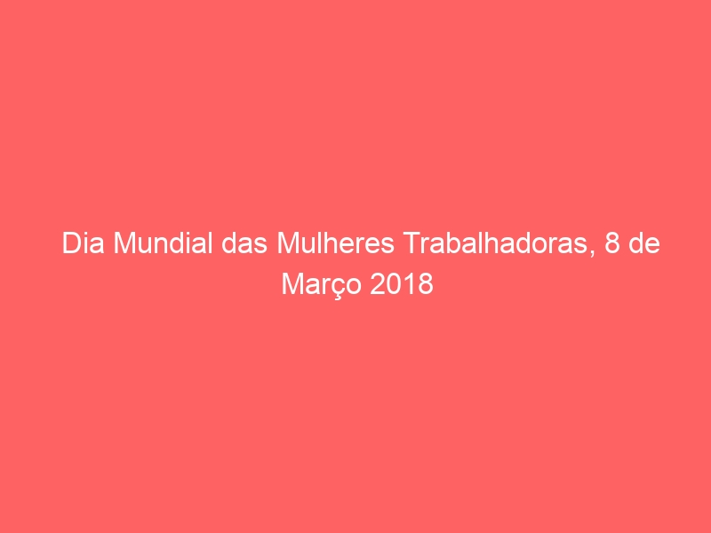 Dia Mundial das Mulheres Trabalhadoras, 8 de Março 2018