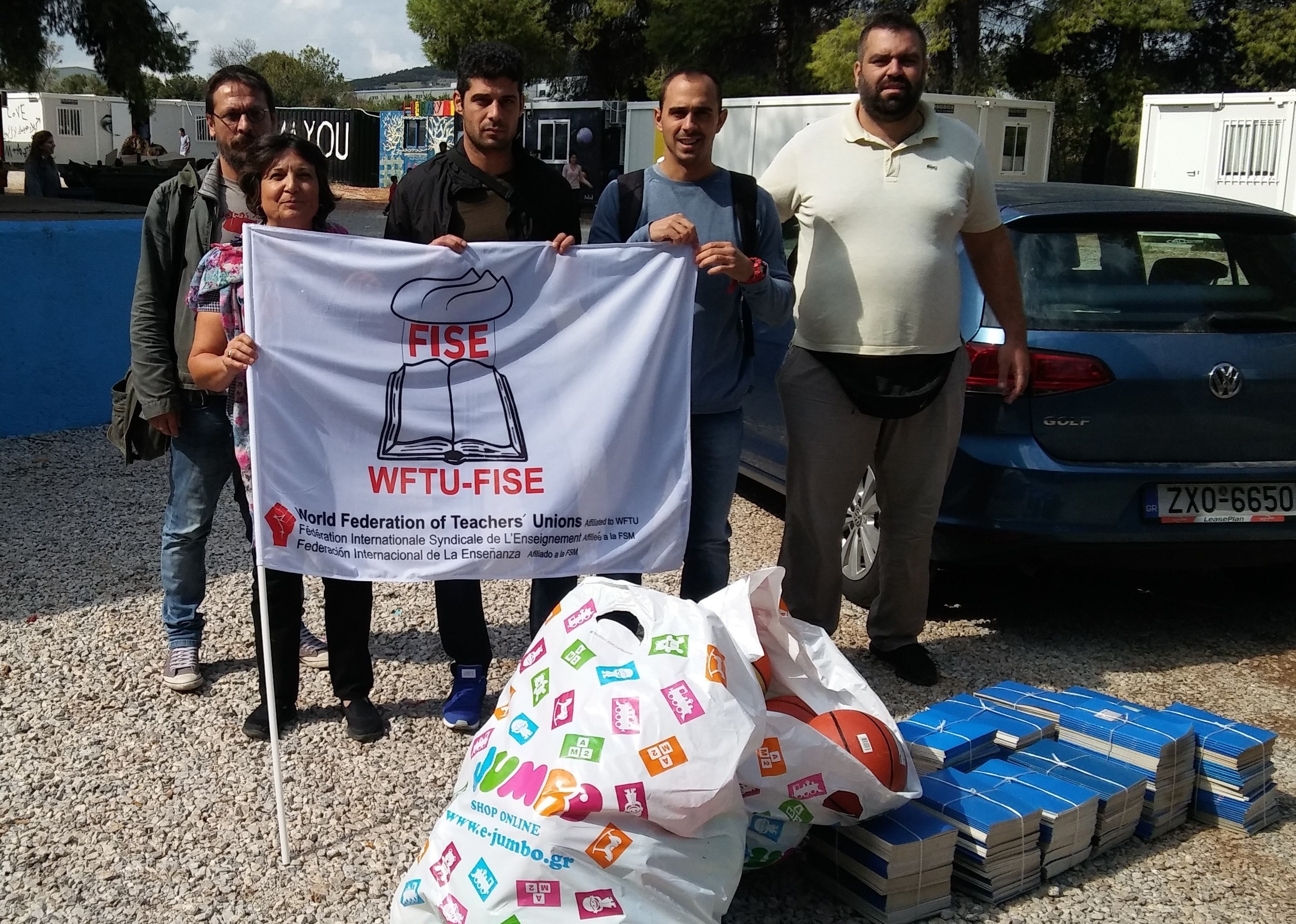 Una delegación de la FISE y de la FSM visitó un campo de refugiados en Grecia y se informó sobre los problemas de educación a los que se enfrentan los alumnos refugiados de Siria.
