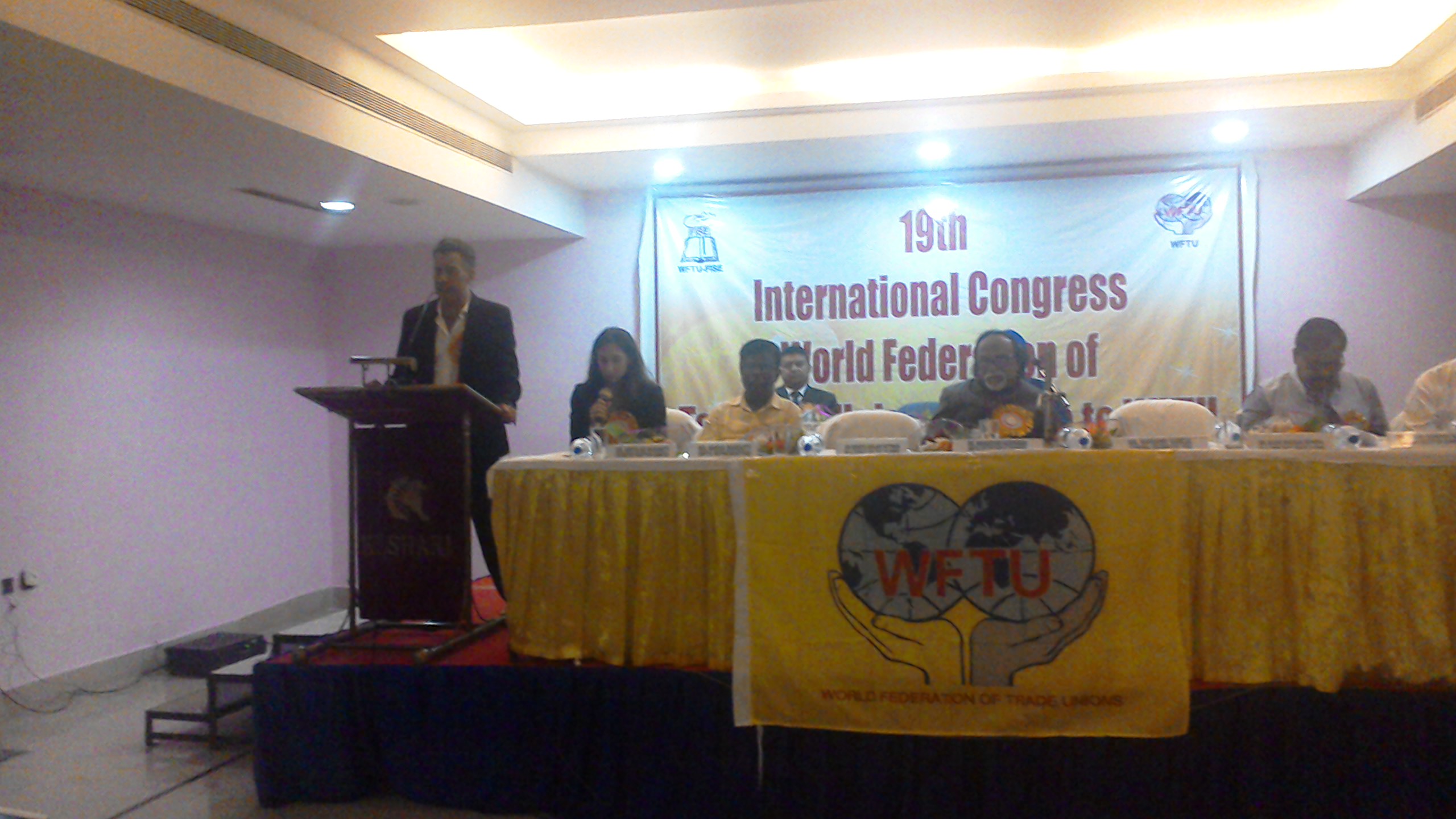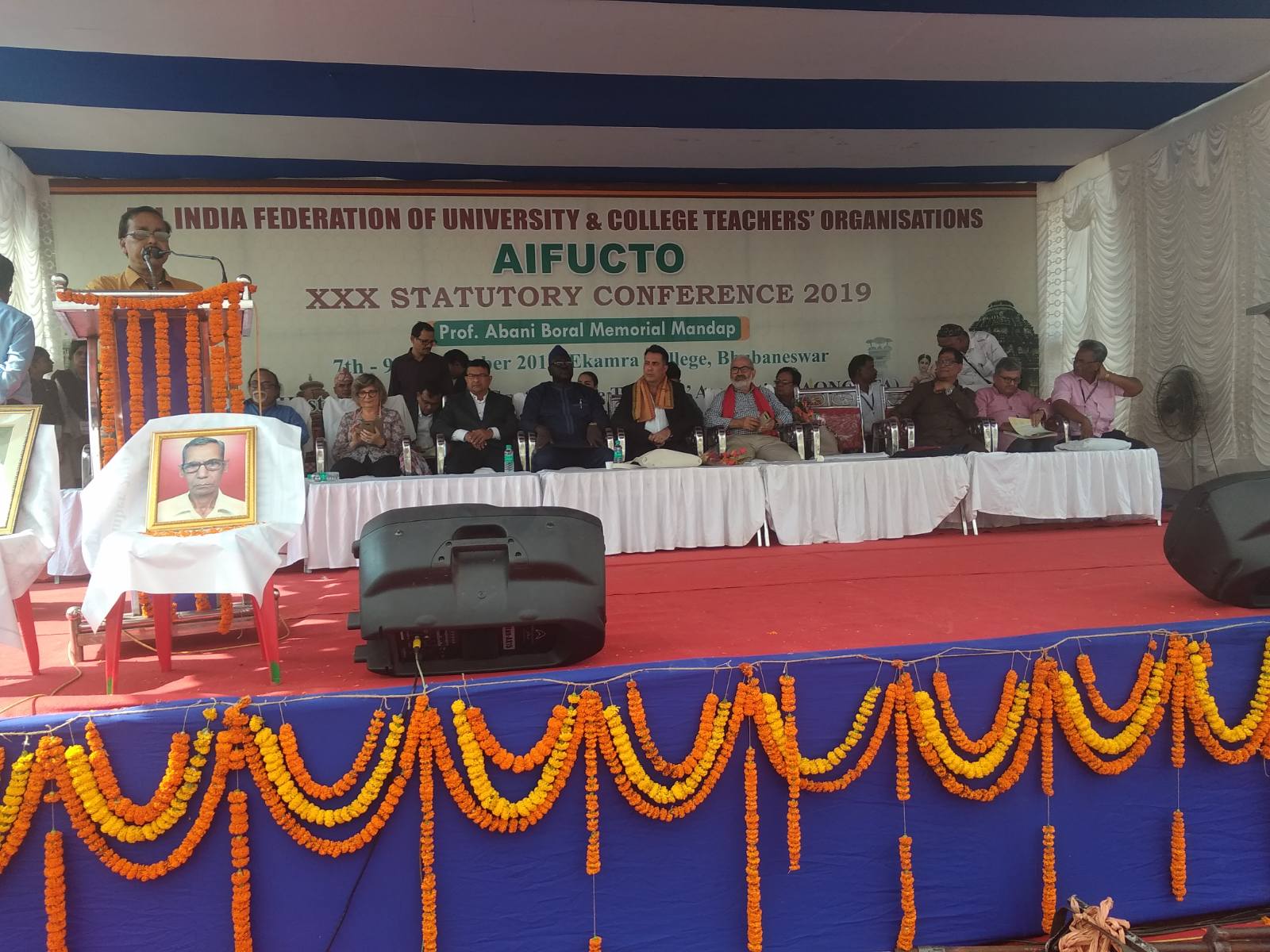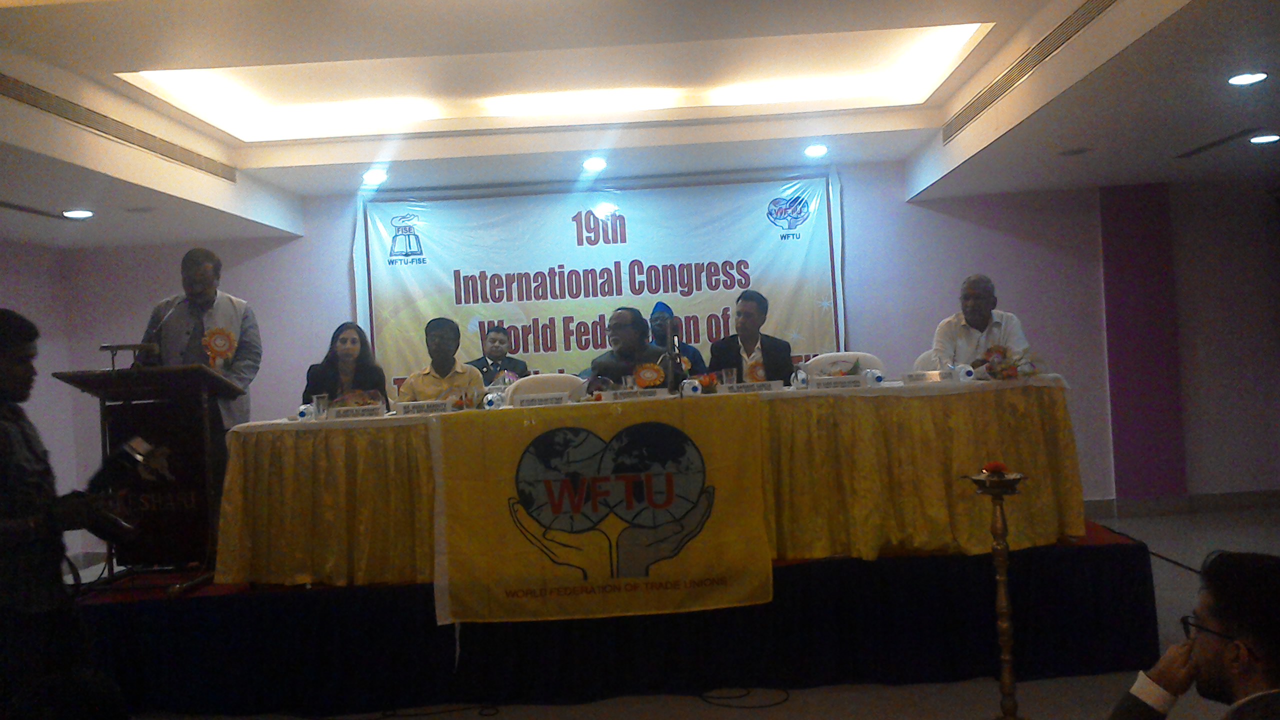 In the framework of the 19th International Congress of FISE, which starts today in Bhubaneswar, Odisha State, India, the delegates of the Congress visited the valedictory session of the 30th Congress of AIFUCTO, All India Federation of University & College Teachers’ Association, where the General Secretary of FISE, Mariano García and WFTU Secretariat Member, Mahadevan Hariharan, conveyed their greeting and support to the teachers of India and their struggles.