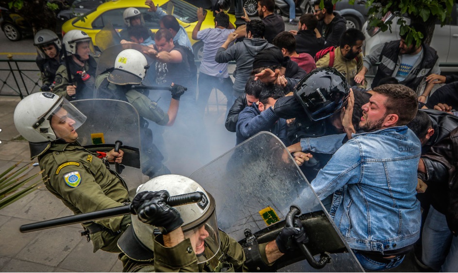 Under the command of the Greek government (SYRIZA-ANEL), the forces of Riot Police attacked with bats, chemicals, tear gas and flash grenades against the mobilization. In fact, the forces of repression, hit with murderous blows and sent three protesters to the hospital, even came to the point and kidnapped 3 students who participated in the mobilization.