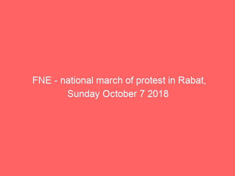 The National Federation of Education (FNE) – Democracy trend calls for a national march of protest in Rabat on Sunday, October 7, 2018 10 am from the Ministry of Education in Parliament on the occasion of the International Teachers’ Day ( 5 October) and to protest against the deterioration of education in Morocco, and against the working conditions of education workers and because of austerity policies and adulterated dialogues