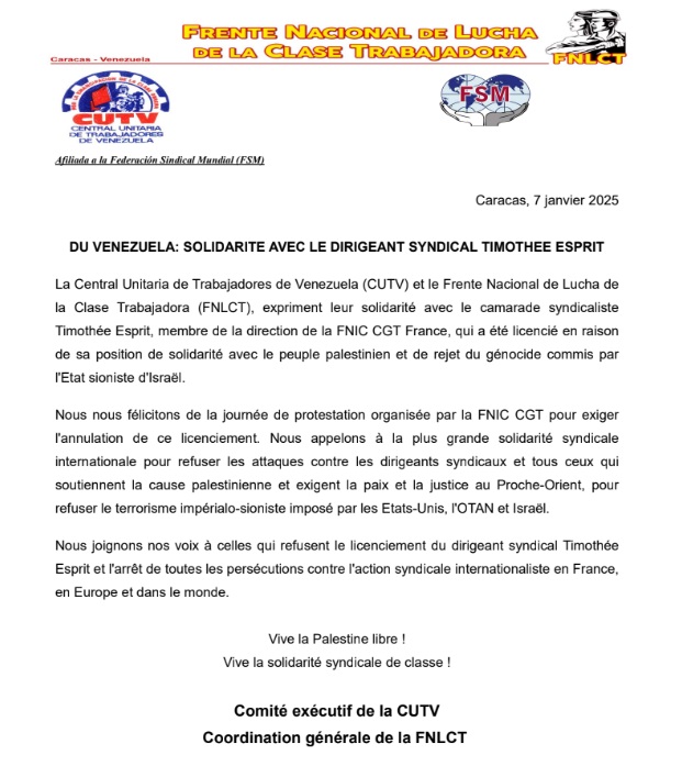 SOLIDARIDAD CON SINDICALISTA FRANCÉS(Enero,2025)francés