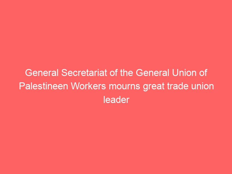 Ramallah: General Secretariat of the General Union of Palestinian mourrse Workers great trade union leader Khaled Abdul Ghani Khreisheh, former Deputy Secretary General of the General Union of Palestinian Workers and a member of the Palestinian National Council, who passed away on Friday in his hometown of Tulkarm.