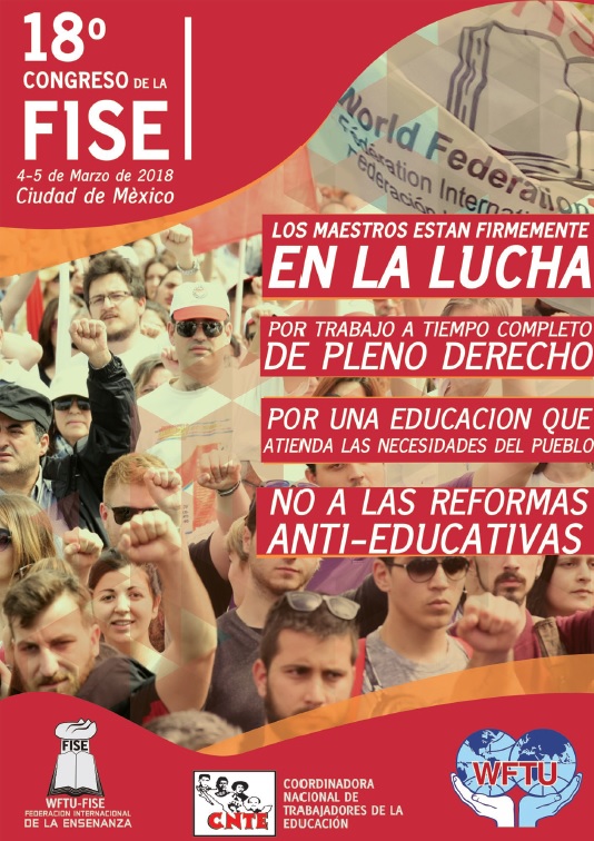 Queridos compañeros, el 18º Congreso de la FISE tendrá lugar en la Ciudad de México, el 4 y 5 de marzo. Les rogamos que reafirmen su participación y que nos la envíen lo antes posible a los siguientes correos electrónicos: [email protected]  , [email protected]  y [email protected] .
