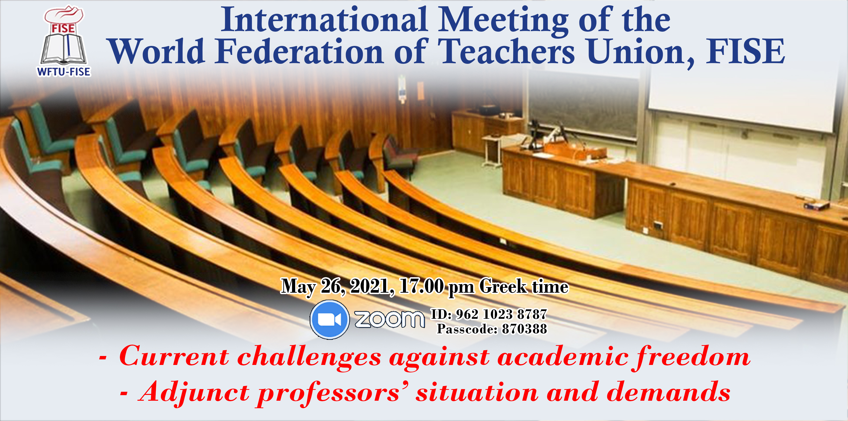 We are cordially inviting you to a virtual International Meeting of the World Federation of Teachers Union, FISE, on the topics: