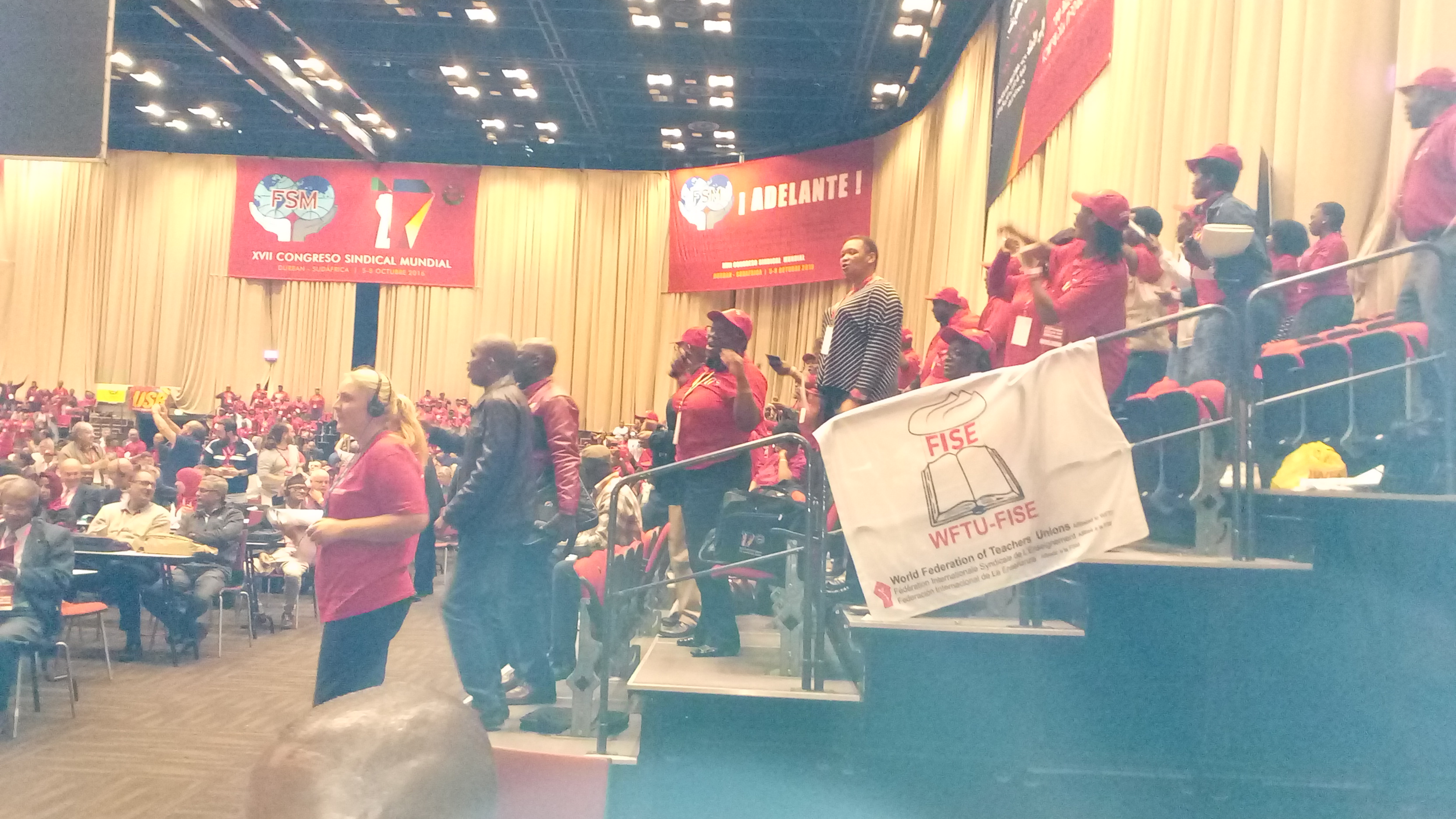 Dans le pays où le peuple a lutté fortement et victorieusement contre l’apartheid, 1500 ouvriers et employés de 111 pays des cinq continents sont depuis aujourd’hui à Durban, en Afrique du Sud, afin de participer au 17e Congrès de la Fédération Syndicale Mondiale(FSM), qui a commencé aujourd’hui, le 5 octobre et se terminera le 8 octobre. Au Congrès participe une délégation de la FISE.