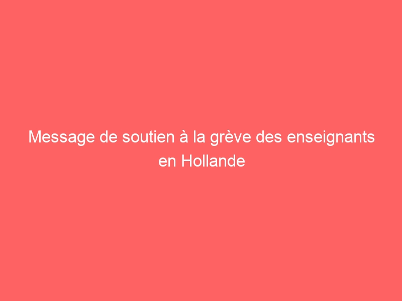 La Fédération Internationale Syndicale de l’Enseignement (FISE), affiliée à la FSM, reste solidaire des enseignants en Hollande qui la semaine dernière ont tenu une grève dans environ 7 000 écoles primaires du pays et des dizaines de milliers de personnes ont manifesté à La Haye. Ils exigent des augmentations salariales dans leurs salaires et du recrutement pour réduire la lourde charge de travail et pour que les classes aient moins d’enfants. Le gouvernement a promis 500 millions d’euros de soutien financier, mais les syndicats (AOB, CNV, PO-raad) ont souligné que 900 millions d’euros de plus sont nécessaires pour les salaires et 500 millions d’euros pour l’embauche du personnel nécessaire, soit au total 1.4 milliards€.