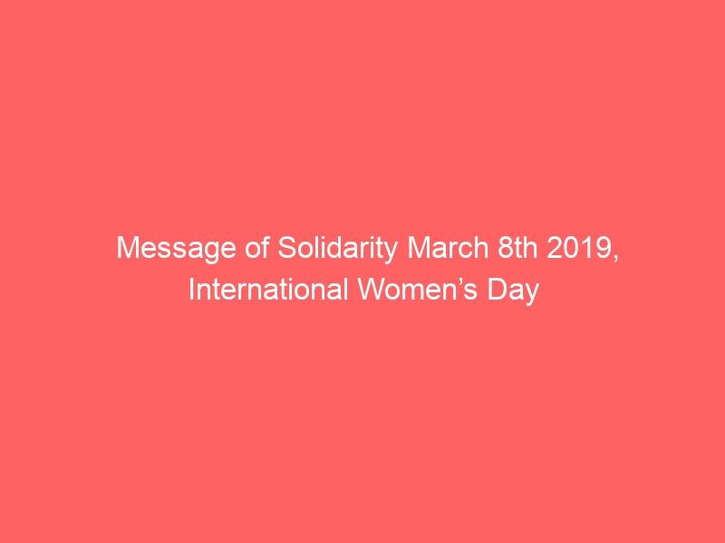 Message of Solidarity March 8th 2019, International Women’s Day