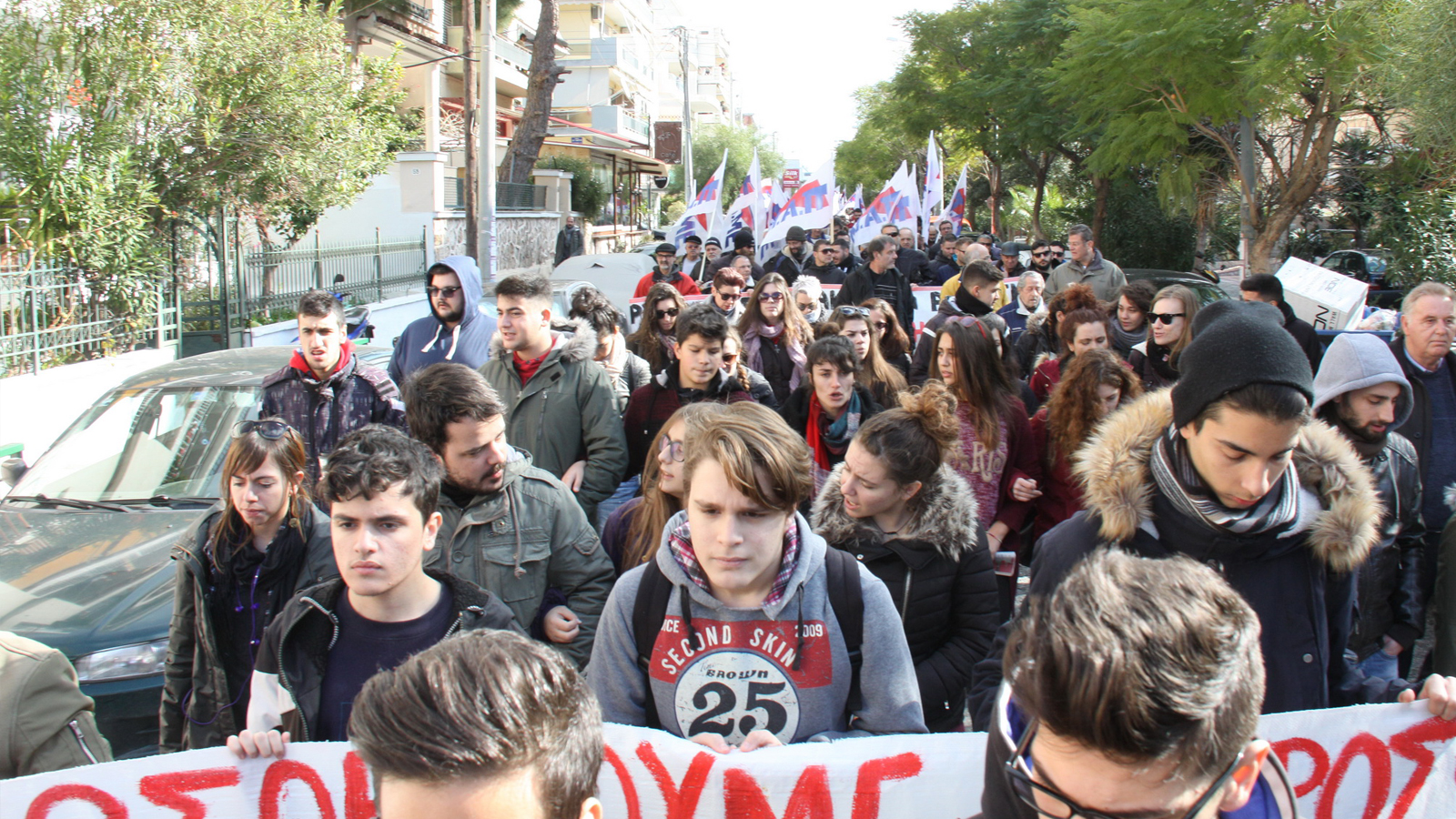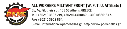 At the demonstration the class unions, the students, parents and teachers highlighted that the people of Piraeus is welcoming the refugee children, the victims of imperialism, and together must fight against those who create poverty and wars.