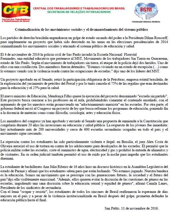 Os estudantes brasileiros ocupam escolas para barrar projetos contra a educação pública