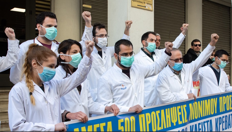 Specifically the doctors denounced the Governments tactics that even today refuse to stuff the Public Hospitals with the necessary doctors and personnel. Additionally the doctors protested for the shortages in necessary materials such as protective masks, gloves, etc.