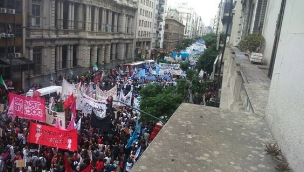The demonstrators gathered early in the morning and marched to the Ministry of Education in Buenos Aires. Across the country, college professors from all national universities joined the strike to demand the government begin salary negotiations and talks on other work-related issues. The Education Workers’ Confederation and the Union of Private School Teachers, the unions that bring together elementary and high school teachers in Argentina, also protested against massive layoffs in the public sector. María Laura Torre, secretary of the Education Workers’ Confederation, said that the observance of the national strike was very high and that the call had proved very successful. The 24-hour strike also called on the government to continue investigations into the 2007 killing of Carlos Fuentealba, a chemistry professor.