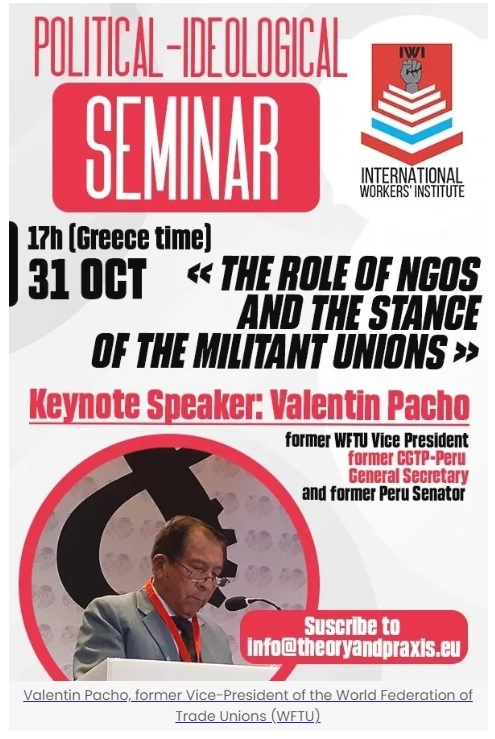 The first cycle of Trade Union Education online seminars for the militants of the international trade union movement begins with a lecture by Valentin Pacho on the following topic: