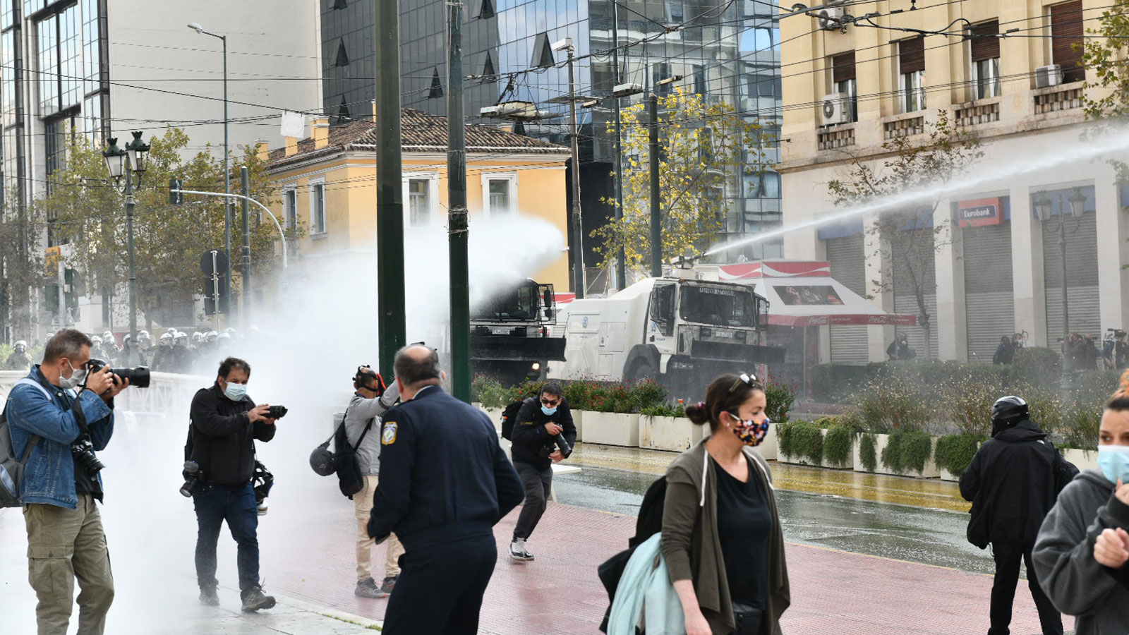 The Executive Secretariat of PAME in its statement denounced“the orgy of repression against peoples’ rallies. Rallies that complied to the maximum with all the measures for the protection of public health. The government and the police responded with chemicals, water cannons, with unprovoked attacks, to MPs ofKKE(Communist Party of Greece), with targeting of PAME trade unionists, they proceeded with dozens of arrests and violent injuries of protesters.