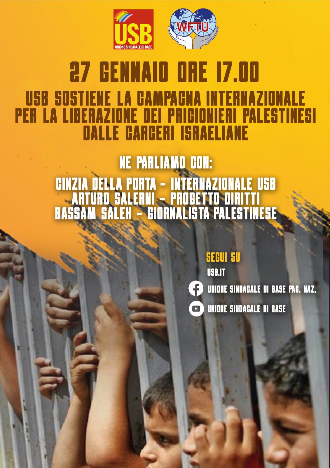 USB  expresses solidarity with the Palestinian people and supports the FSM international campaign for the release of all Palestinian prisoners but especially the many children unjustly imprisoned against all international rights.