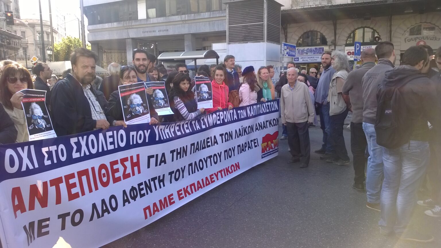 Large gatherings and demonstrations organized by the PAME in many Greek cities Saturday, October 5. The protests involving teachers at their top and slogans. The concentration of Athens, members of the Secretariat of FISE, marched along with teachers of PAME and honored racing the world Teachers’ Day